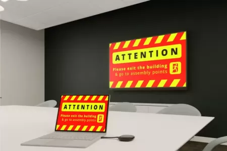 Elige entre cientos de plantillas o crea las tuyas propias. Envía mensajes instantáneos predefinidos a las pantallas: ideales para alertas de emergencia, anuncios o cambios en el menú.