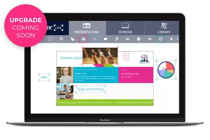 La belleza de la señalización digital Clevertouch reside en nuestra galardonada plataforma en línea gratuita, CleverLive. Comparta contenido atractivo, alertas instantáneas e imágenes de marca en sus pantallas en segundos. Controle todos sus dispositivos Clevertouch desde un único lugar con funciones de edición y programación en tiempo real. Próximamente: una nueva imagen elegante y funciones mejoradas.