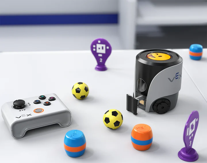 Conoce a VEX AIM, el revolucionario robot de programación que transformará la educación en informática en las aulas de secundaria y preparatoria. Con su sensor de visión de IA y su ágil motor omnidireccional, ofrece una experiencia de aprendizaje práctica e inmersiva, accesible mediante programación en bloques y Python a través de VEXcode. Este avanzado robot traslada la educación en informática de la pantalla, ofreciendo infinitas posibilidades para lecciones y actividades gracias a su capacidad única de patear, atrapar e interactuar con pelotas y barriles. Con su diseño compacto, de menos de 7,6 cm de altura, este robot se integra fácilmente en cualquier aula de informática, lo que lo convierte en el complemento ideal para el entorno de aprendizaje.